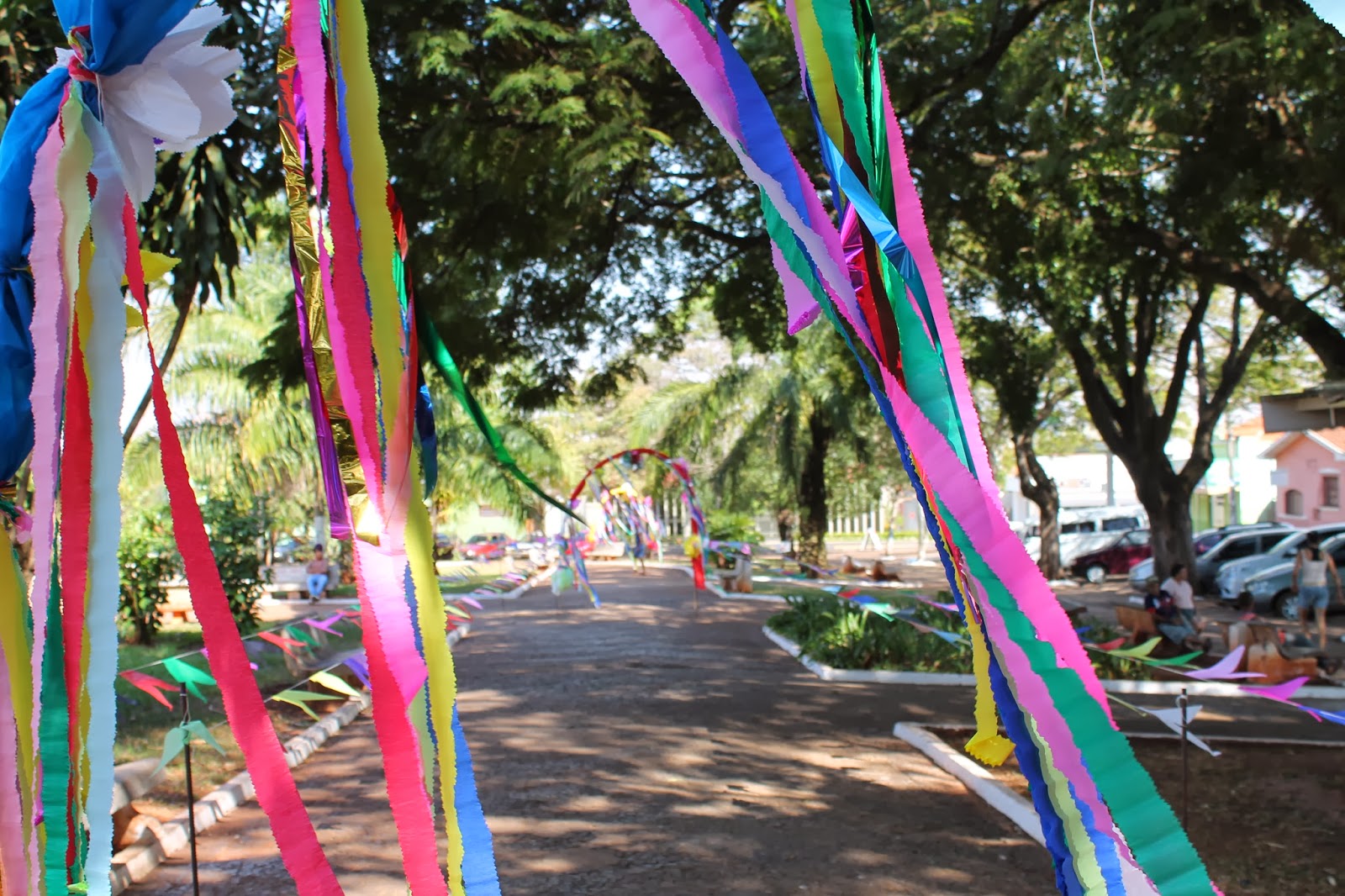 O cenário da praça da Matriz foi colorido e enfeitado para o evento, realizado pela Secretaria de Cultura da cidade.