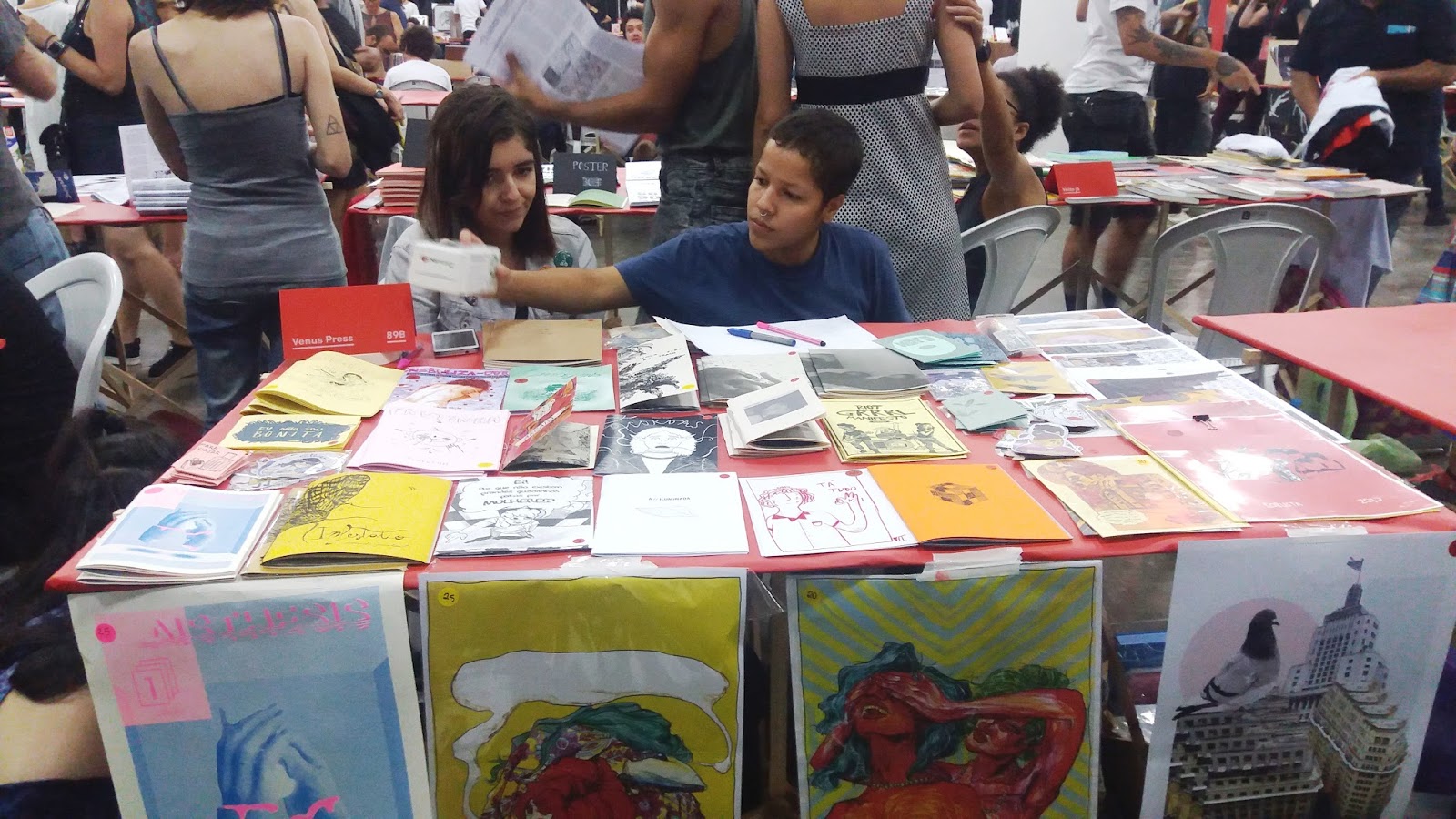 É a perigosa Plana Festival Internacional de Publicações de São Paulo. O tema “Fim do mundo” cai bem com as atuais circunstâncias, mas o conteúdo das mesinhas espalhadas pelo térreo e mezanino dão mais vontade de viver. Quantos anos são precisos pra dar conta de sentir, ler e apreciar tudo aquilo? Sem saber bem, vamos às compras! Olha só alguns trabalhos: