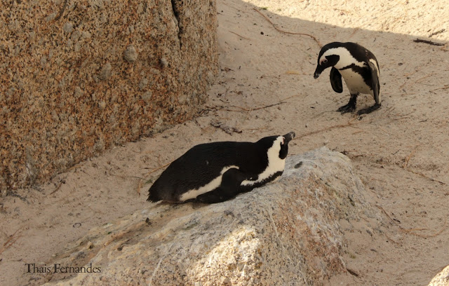 A espécie é monogâmica, ou seja, seus parceiros são para toda a vida. Os casais se revezam para incubar os ovos e para alimentar seus filhotes. Dica valiosa, segundo o informativo do Table Moutain National Park, apesar da Boulders Beach ser o ponto mais famoso, o melhor local para ver as aves é a Foxy Beach. Vale a pena ficar atento aos mapas entregues no parque.