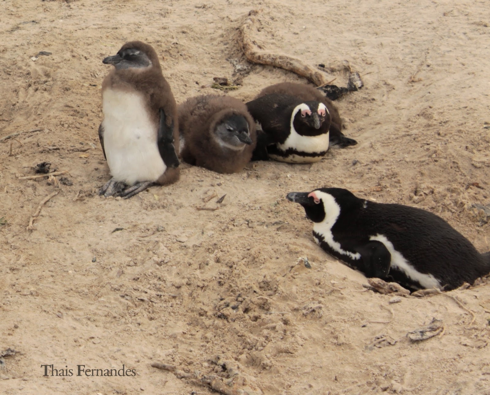 Vocês podem imaginar a cara das crianças quando os pais contam que tem pinguins na África do Sul??? E o rostinho se iluminando quando descem do ônibus e vão chegando pertinho da Bolders Beach, a praia que guarda uma colônia inteira dessas aves? Podem refazer a cena do queixo de uma pequenina criatura caindo ao ver as outras pequeninas criaturas recém-saídas do ninho?