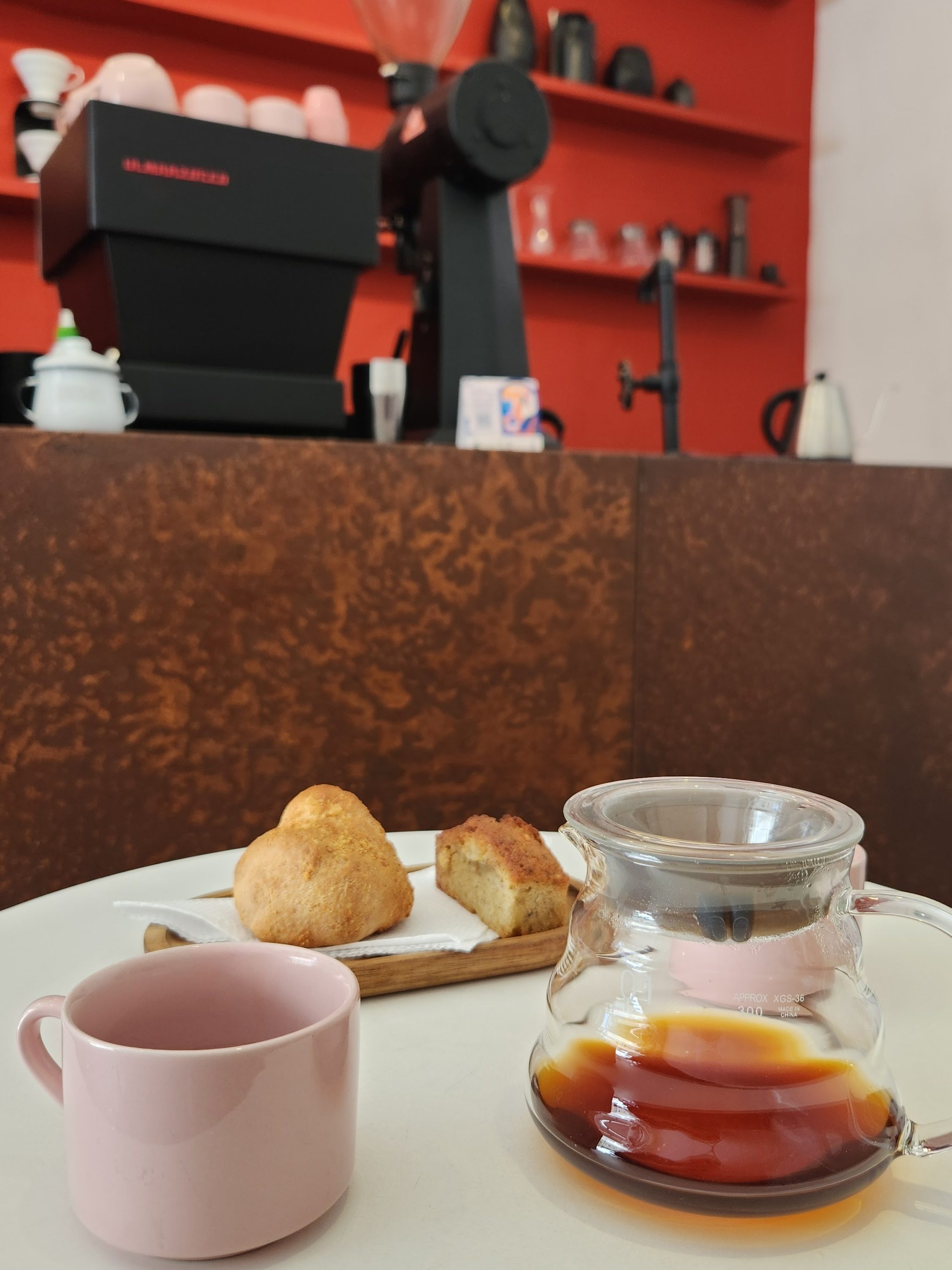 combo: café coado + financier + pão de queijo. a bebida é feita com grãos do café Mourisco, uma marca de produtor local que eu estava doida pra provar.
