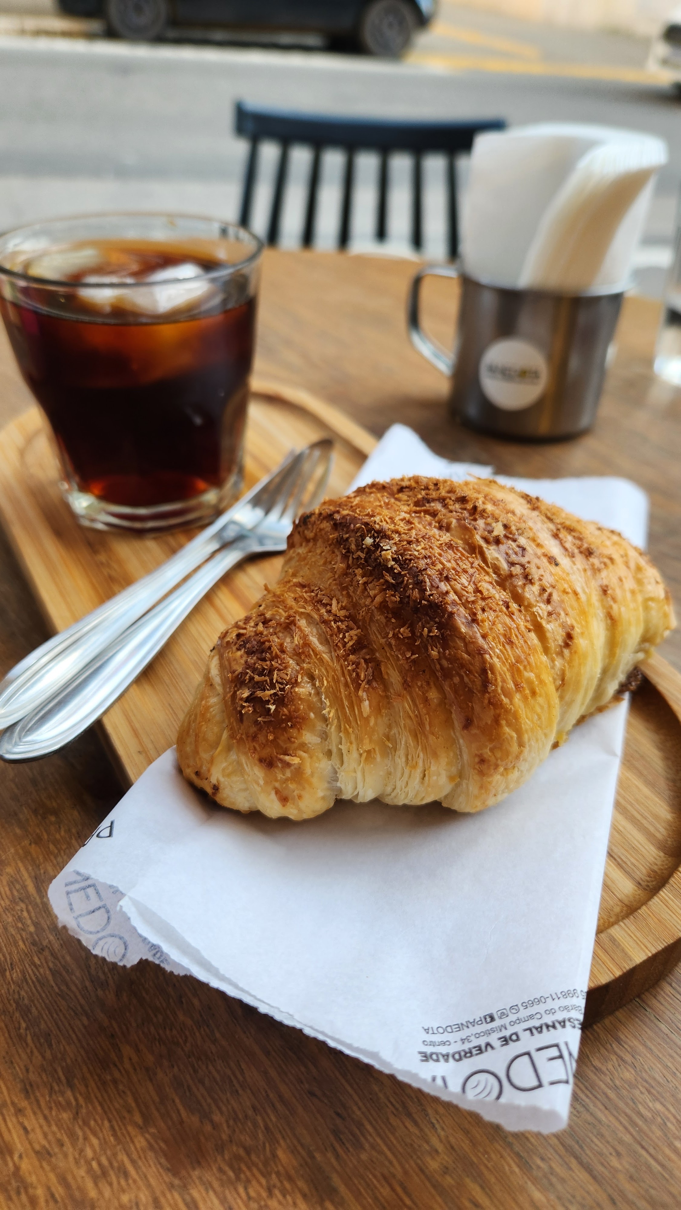 combo: cold brew + croissant de coco com doce de leite de corte regional. Café extraído a frio, o cold brew estava delicoso. como já foi feio gelado, ele segue sem derreter o gelo e é a melhor opção no calorão! A massa do croissant é incrível, trabalho da padeira dona da casa.