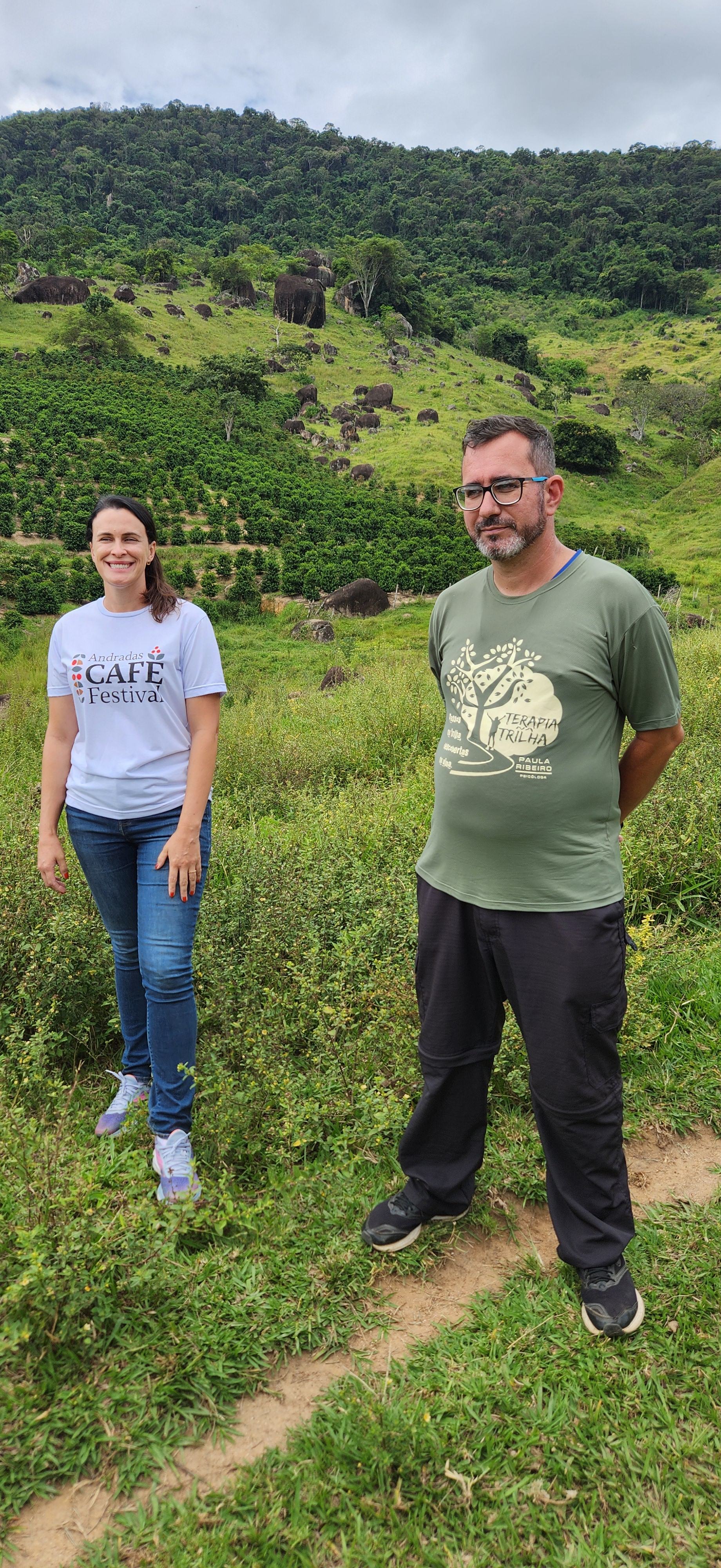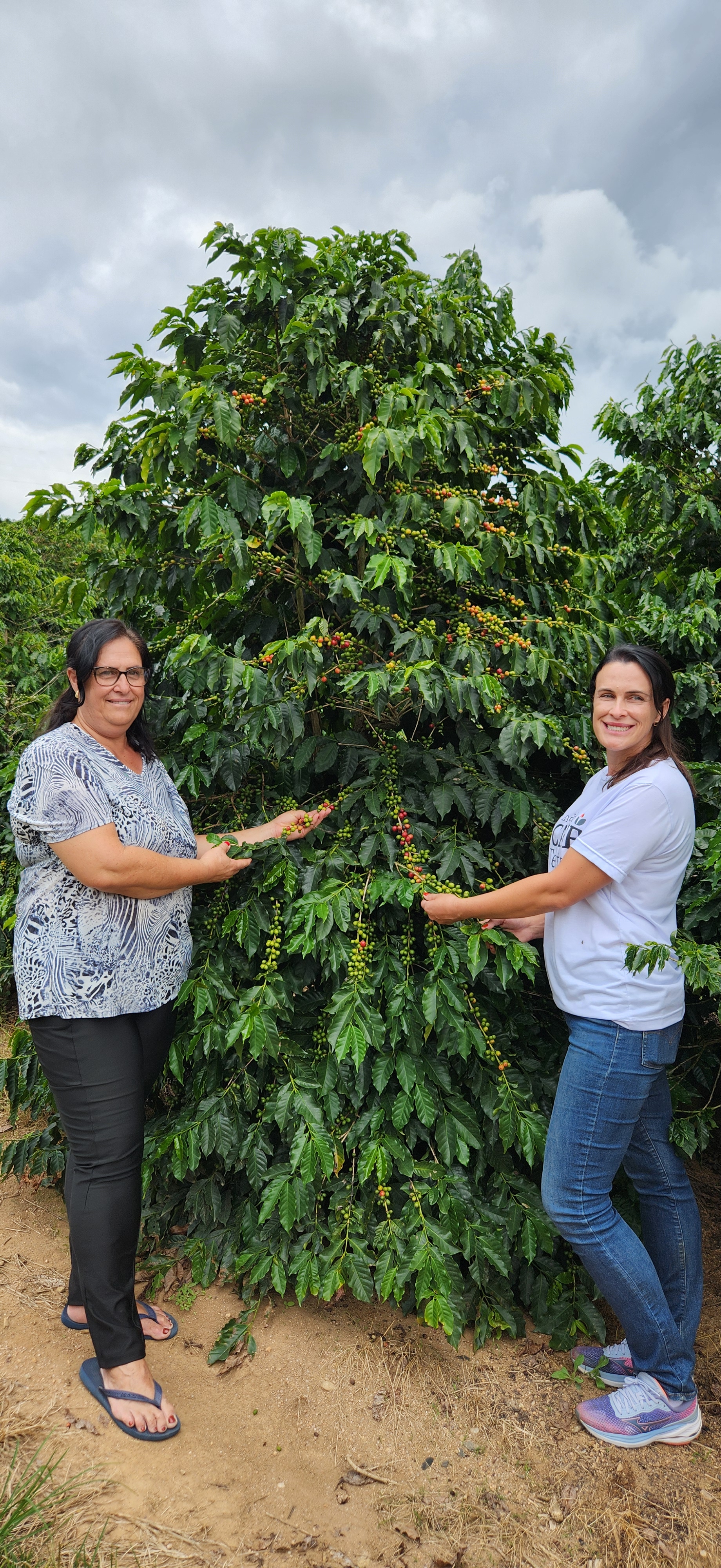 lá, ela decidiu ficar de vez e entrar de cabeça na produção cafeeira. “Esse sítio sempre foi da minha família. Quando eu voltei, durante a pandemia, vi que tínhamos potencial para produzir cafés especiais e começamos a fazer os primeiros lotes de cafés especiais e comercializar torrado. Trabalhamos juntos, eu e meu pai”, contou ela durante a visita do grupo à propriedade.