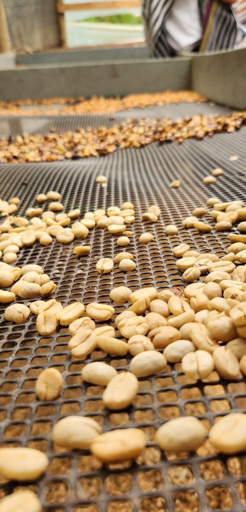 Além disso, eles estão se empenhando em inovar nos processos. tem cafés lavados, naturais e fermentados… e um terreiro suspenso bem legal, com telhado pra evitar as chuvas, bem comuns por lá.