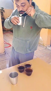 -São escolhidas algumas amostras de cafés diferentes para serem provadas.